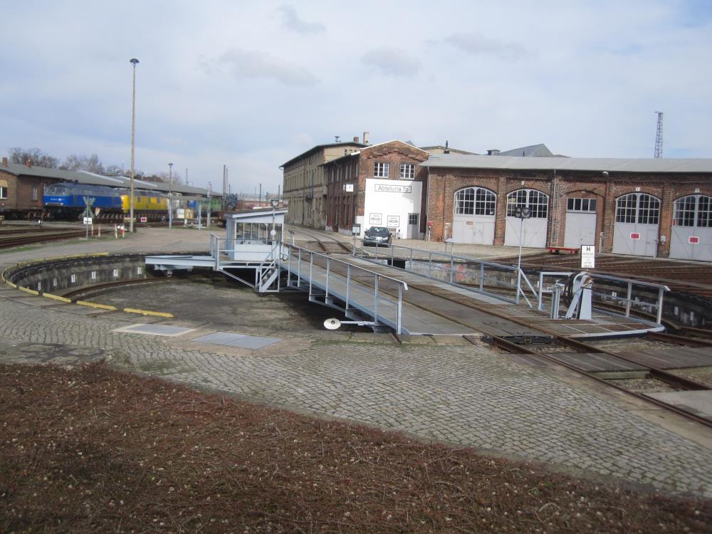 The turntable is the centrepiece of the museum's premises. It is used to turn incoming locomotives onto the appropriate adjoining shed road, or track. The installation has a maximum working load of 350 tonnes and can be operated by electricity, compressed air or pure muscle power. The turntable deck is almost 24 metres (about 78 ft) long, making it the largest surviving installation of this type in Germany.