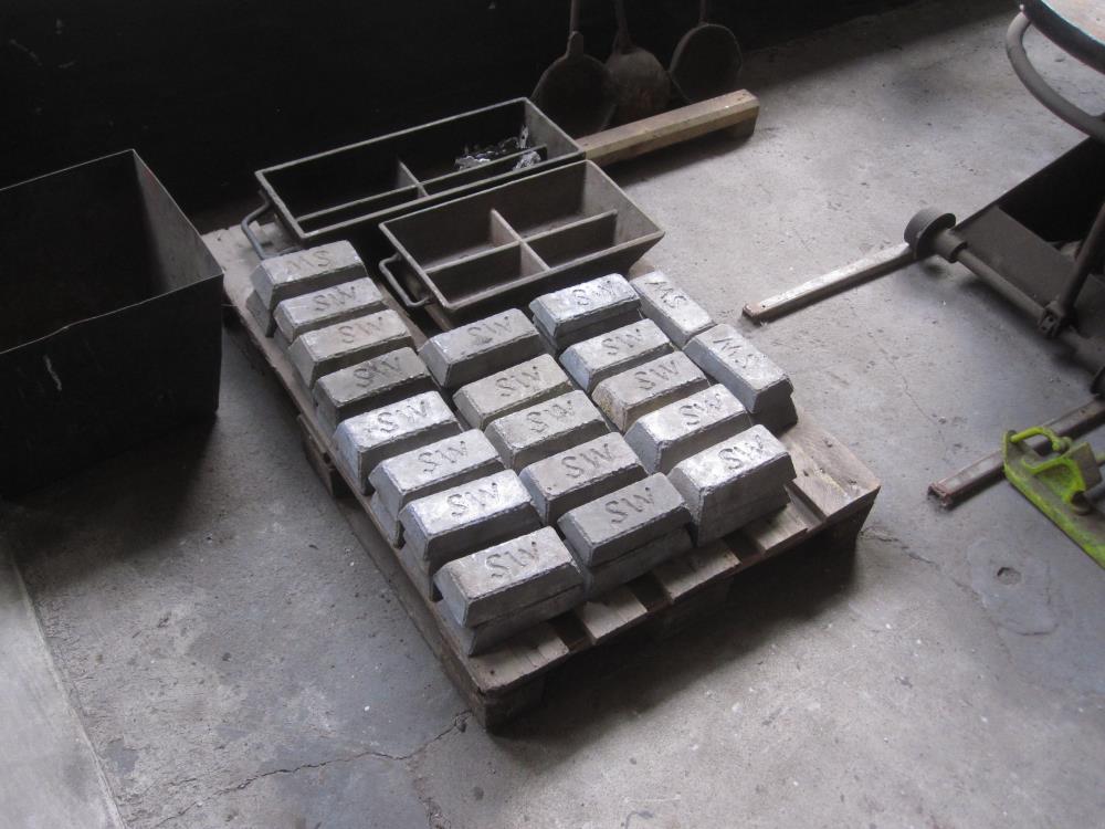 Next to that, the active members have installed a furnace. Also originally from Salzwedel, this furnace was for melting white metal for casting the bearing shells for axles and driving rods of locomotive. The furnace was fired with heating oil. The pictures show on one side the bearing metal in bar form, on the other side, the furnace.