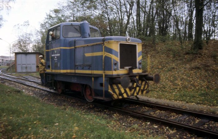 This locomotive is a diesel shunting loco built by the company Linke-Hoffmann-Busch, Salzgitter, originally delivered to the Salzgitter-Chemie GmbH. The company used to operate a chemicals processing factory adjacent to the station of Melbeck-Embsen, near L