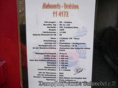 Bei unserer Veranstaltung am 28. und 29.10.2006 waren die Mitglieder der Dampflok-Gemeinschaft 41 096 bei uns zu Gast. Sie haben ihre Bahnmeisterdraisine KlV 11 4172 mitgebracht, die auch für Mitfahrten bereitstand.