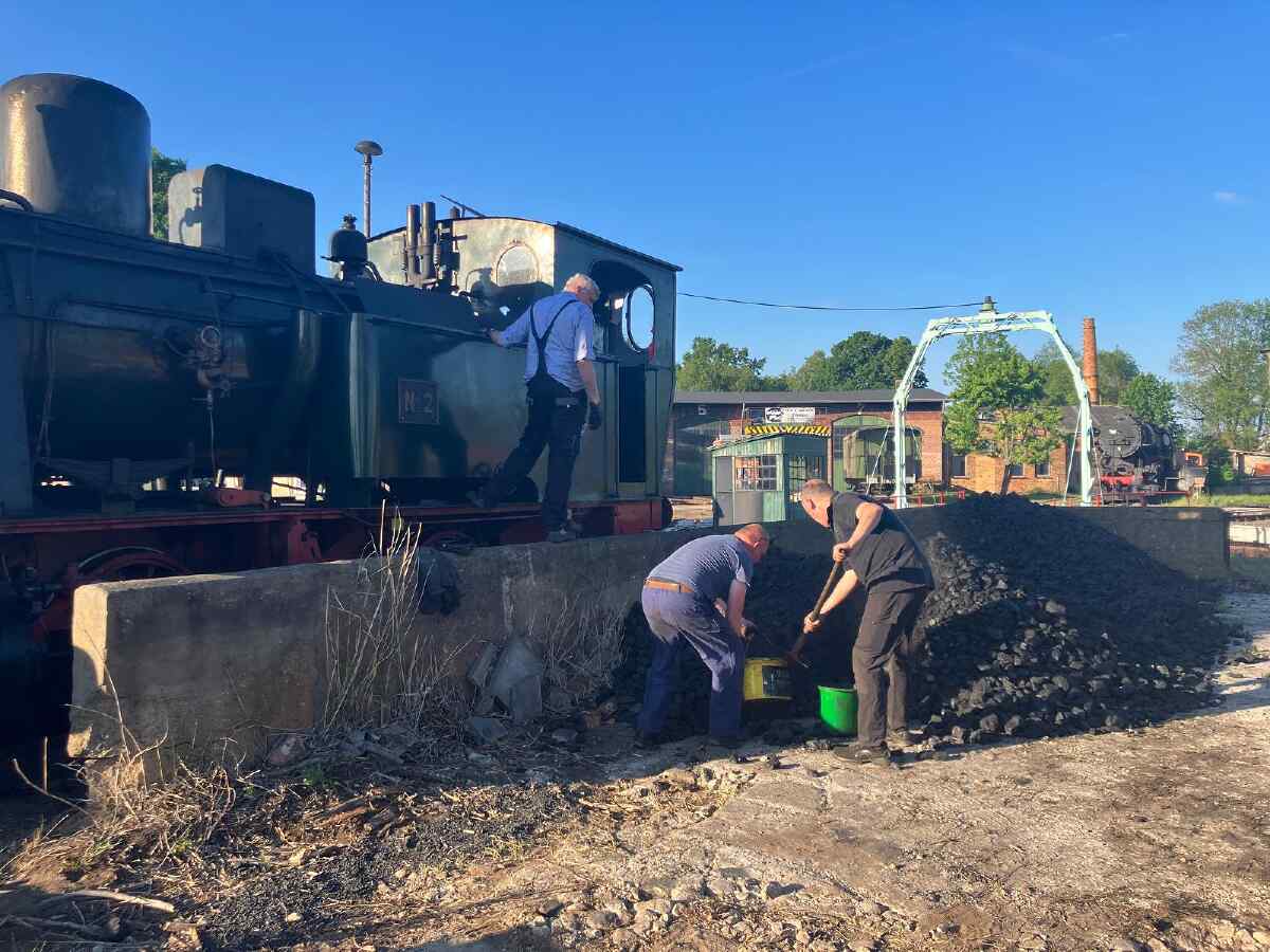 Once we arrived in Luckau, we completed the locomotive again after some overhanging parts had been unscrewed for transport.