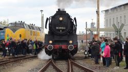 Bereits am Samstag, den 12.9., setzten wir unseren kurzen Museumszug bestehend aus Lok 0604 der OHE und einem zweiachsigen Personenwagen als Pendel zum Wittenberger Bahnhof ein.